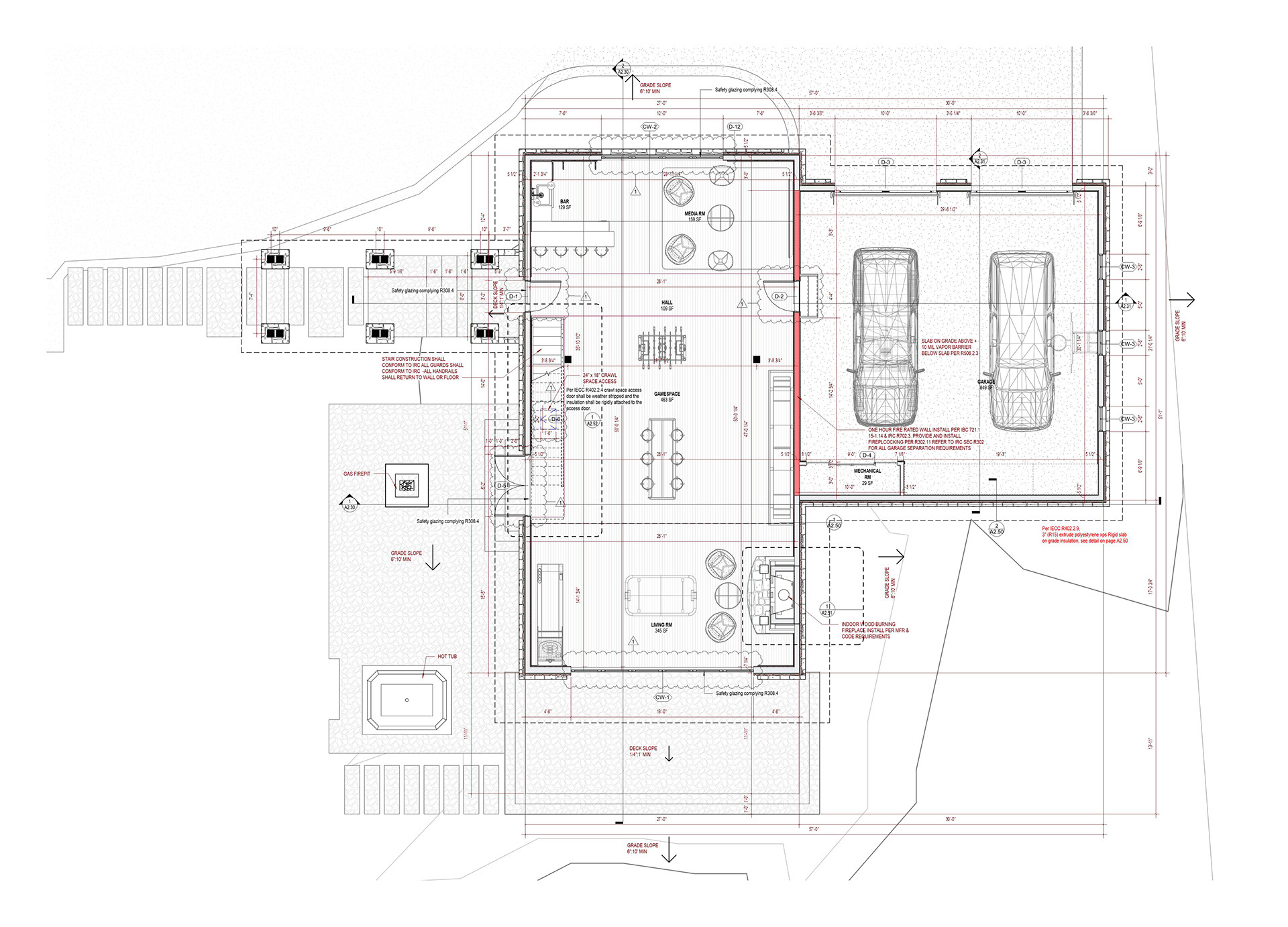 This project involved the design and documentation of a barn addition to an existing residence located in a private community in Wyoming. The process began with the modeling of the as-built conditions of the main house, based on scanned, hand-drawn plans provided by the client.
